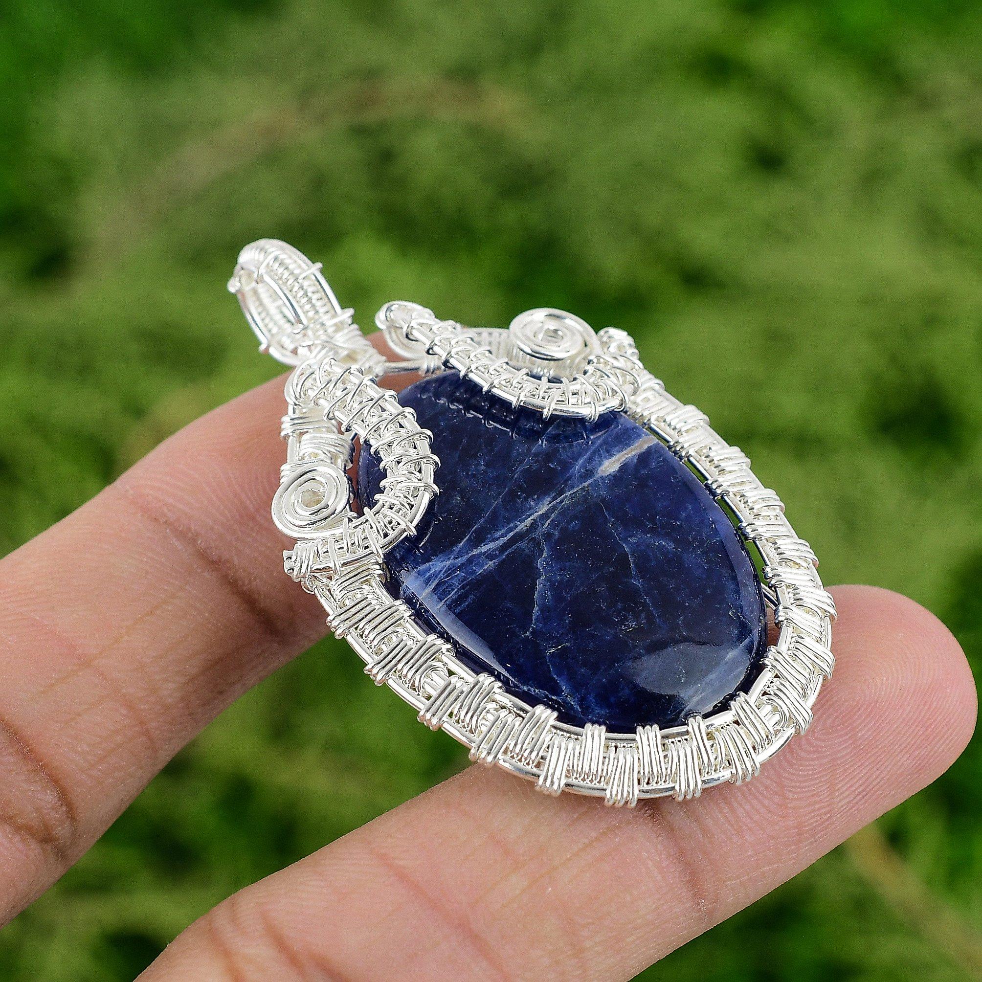Содалит Драгоценный камень 925 Серебро Жена Проволочная обмотка Подвеска для чакры третьего глаза Ювелирные изделия