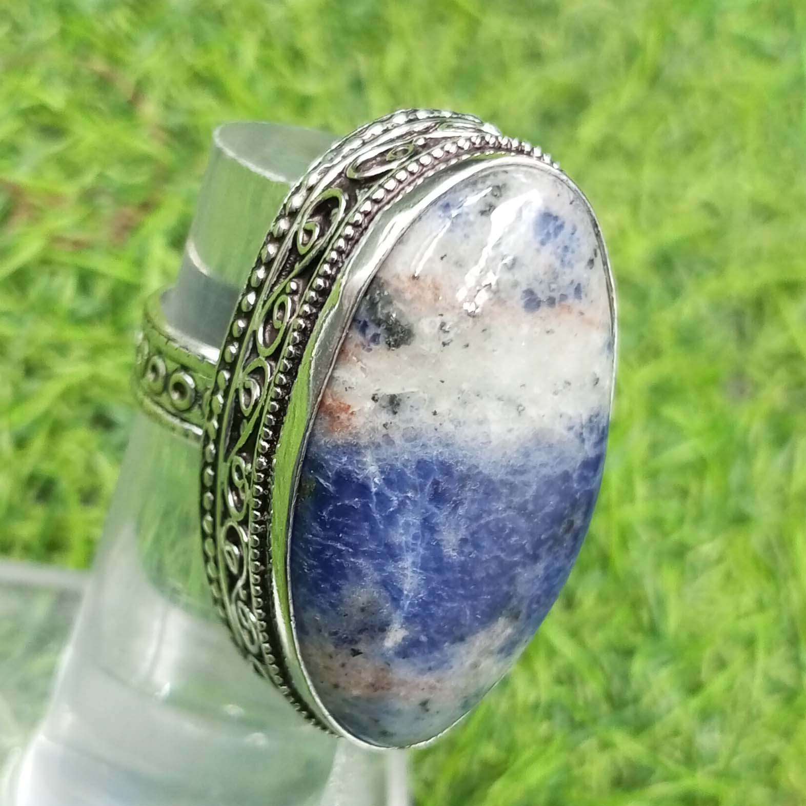 Тип изделия Кольцо, драгоценный камень содалит, кольцо SZ 8, металлическая латунь, материал драгоценного камня, овальная форма камня, натуральный камень