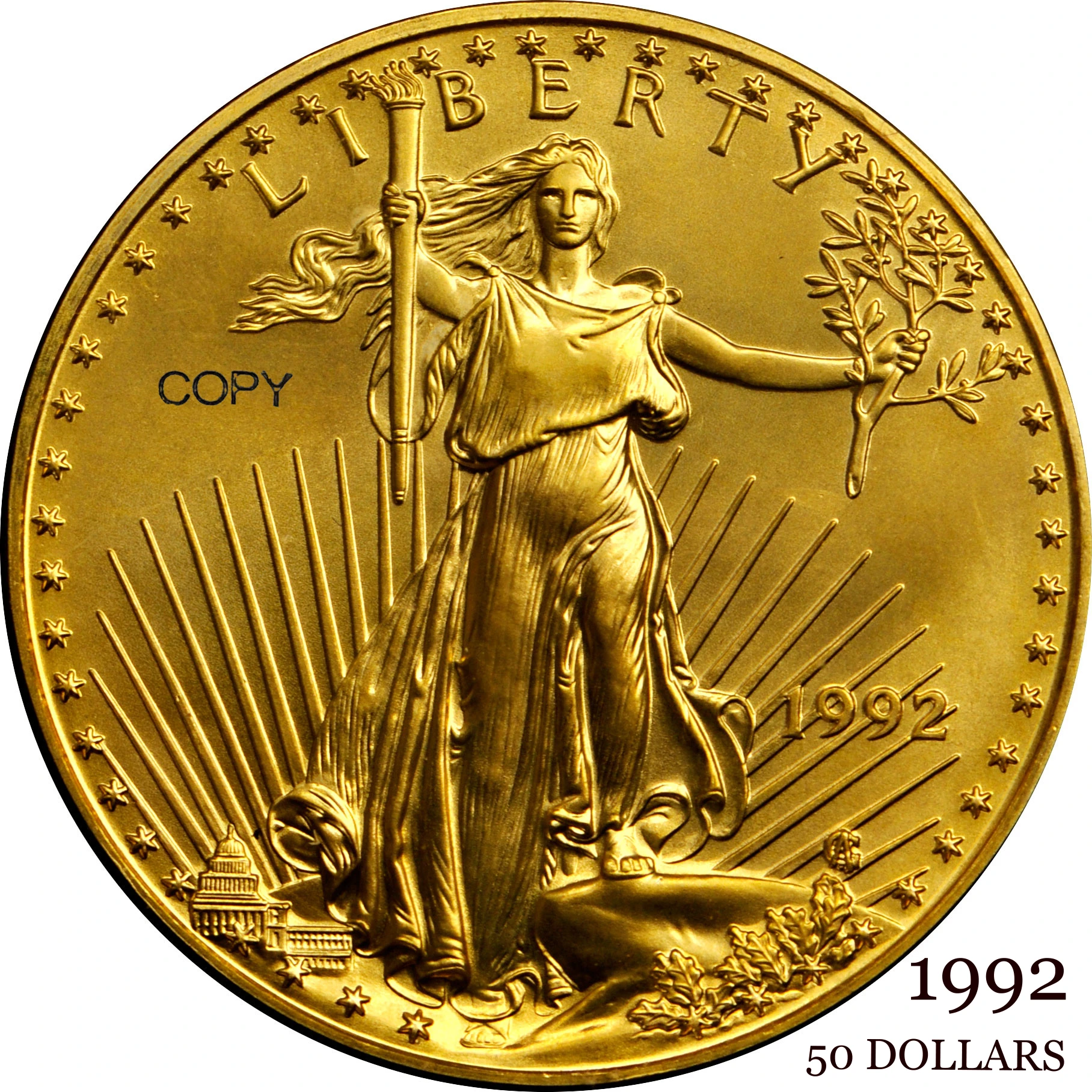 Соединенные Штаты, США, 1992 долларов, одна унция, американская изящная Золотая монета в виде орла, слитка, США, свобода, латунная металлическа...