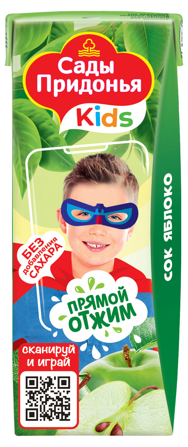 Сок Сады Придонья яблочный с мякотью прямой отжим с 4 месяцев, 200 мл