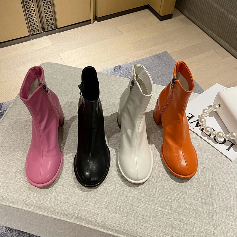 Fashion Martin Boots Front Chain Lace Up Square Head Catwalk Super High Heel Waterproof Black Best Women's Short Boots Designer