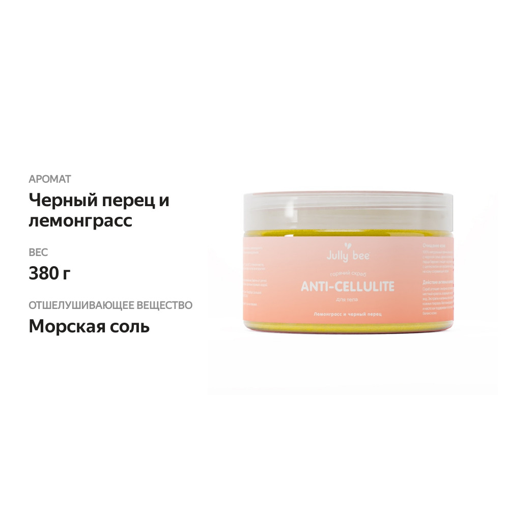 Солевой скраб Jully bee Антицеллюлитный с эфирными маслами черного перца и лемонграсса, 380 г