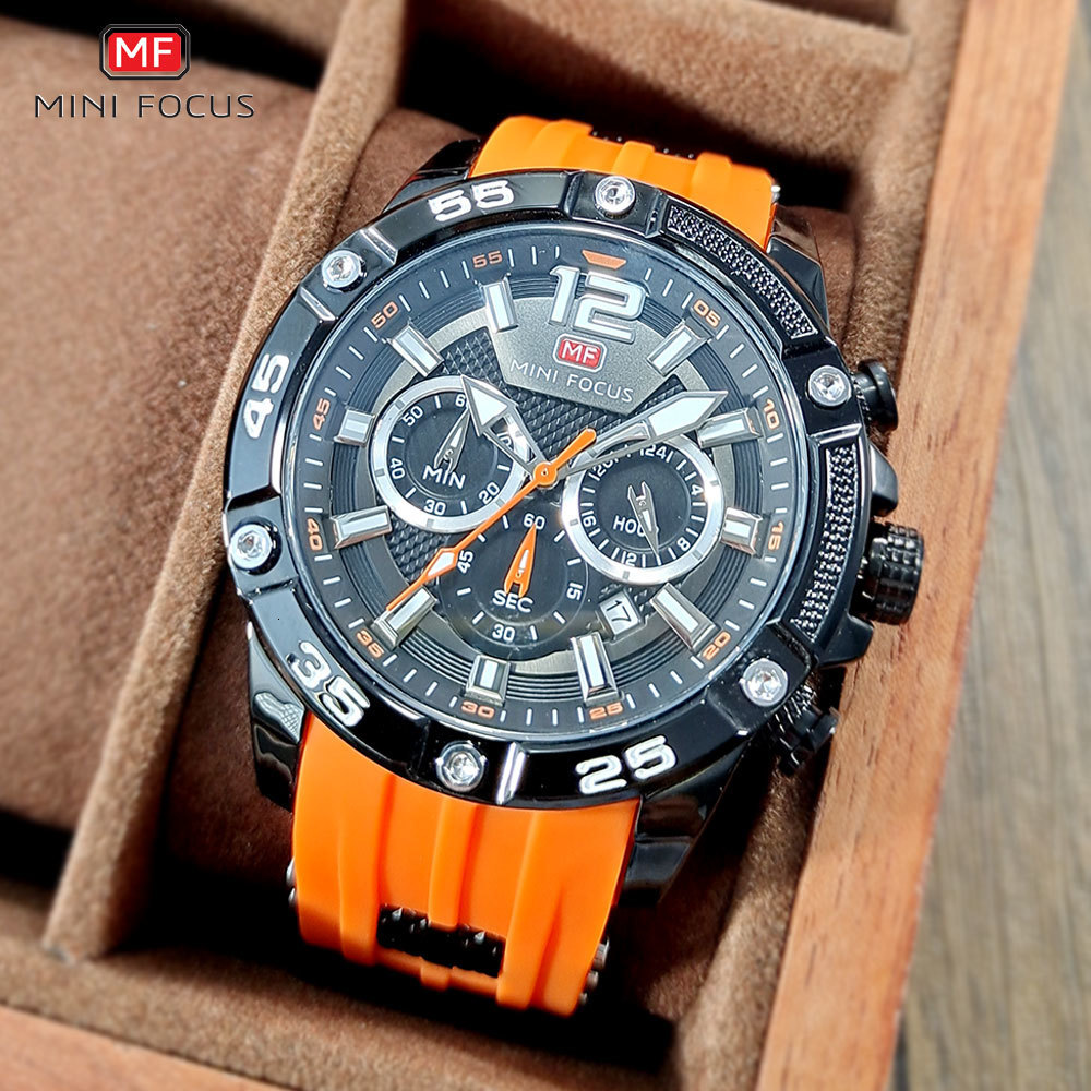 Wristwatches MINI FOCUS Orange Watch for Men Military Sport Chronograph Quartz Wristwatch with Silicone Strap Waterproof Luminous Hands 0349 230202, 0349red