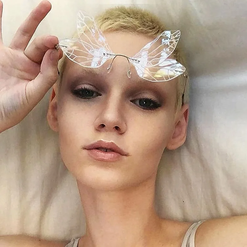 Солнечные очки без оправы карамельных цветов, женские солнечные очки в стиле панк со стрекозой, без оправы, с прозрачными градиентными линз...