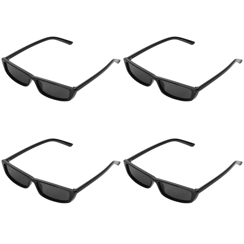 Солнечные очки в стиле ретро S17072 женские, небольшие винтажные прямоугольные солнцезащитные аксессуары в черной оправе, 4 шт.