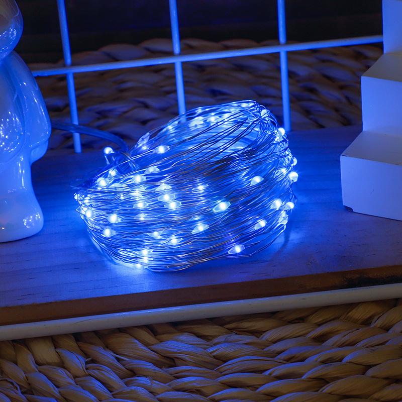 Солнечный уличный солнечный свет Светодиодная гирлянда Фея Медная проволока Световая лента Свет Сад Свадьба Вечеринка Рождественский подарок Украшение 7M 50LEDs-8MODE(Solar) синий