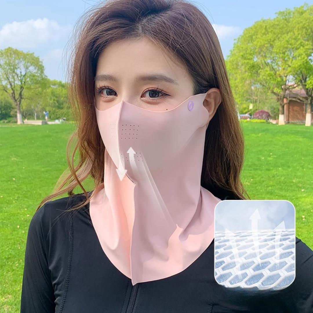 Солнцезащитная дышащая женская анти-ультрафиолетовая маска для верховой езды из ледяного шелка, солнцезащитная маска, встроенная защита шеи Pink серебряный