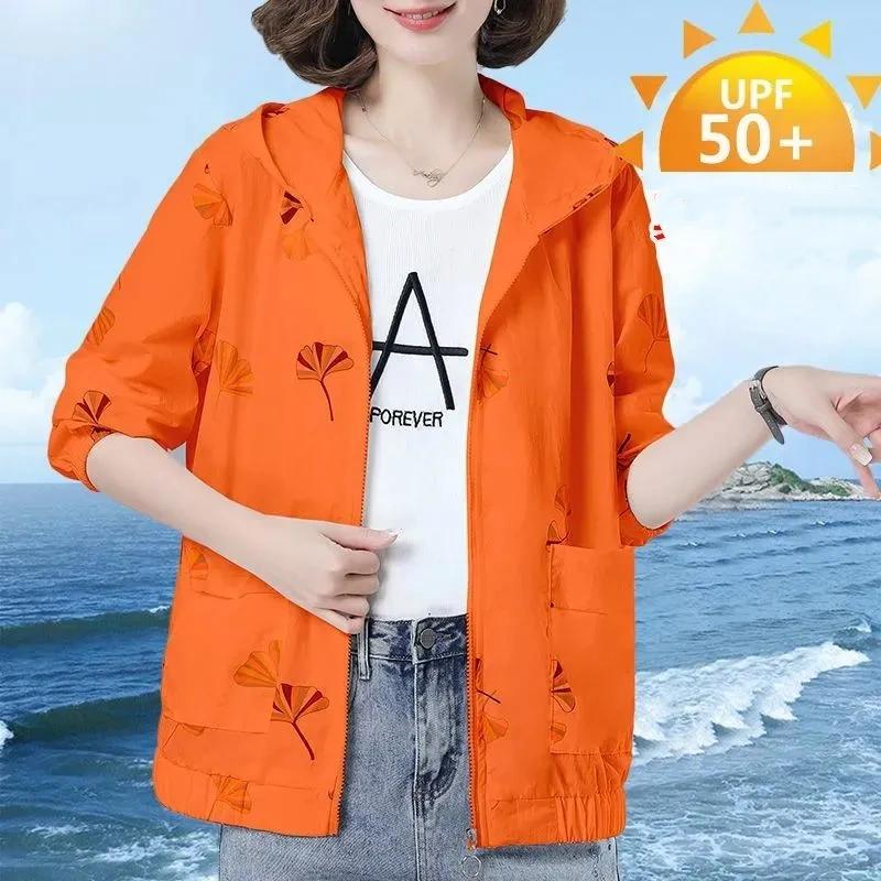Солнцезащитная одежда Женская легкая куртка с длинными рукавами Летняя женская свободная одежда с капюшоном для защиты от солнца большого размера XS оранжевый