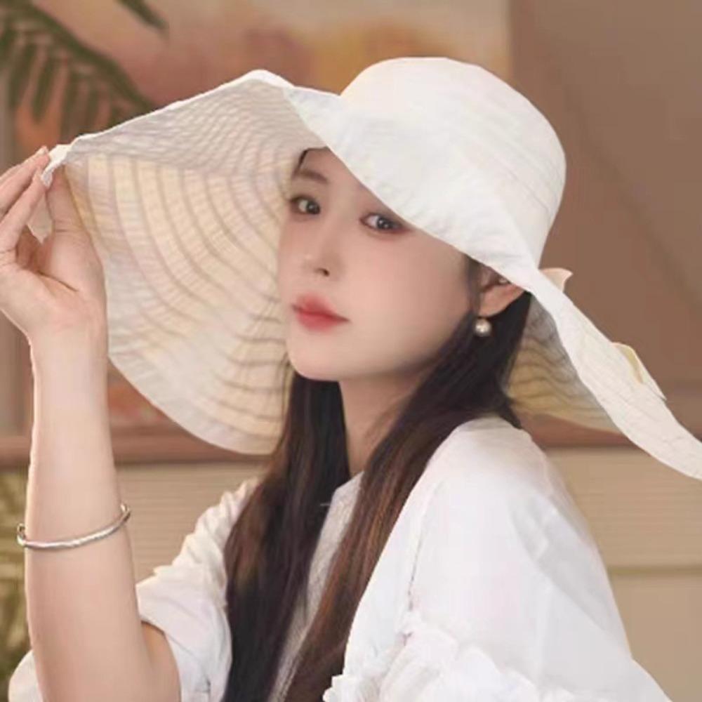Солнцезащитная шляпа с защитой от УФ-лучей, шляпа с очень широкими полями и бантом, пляжная шляпа, летняя шляпа для путешествий, солнцезащитная шляпа