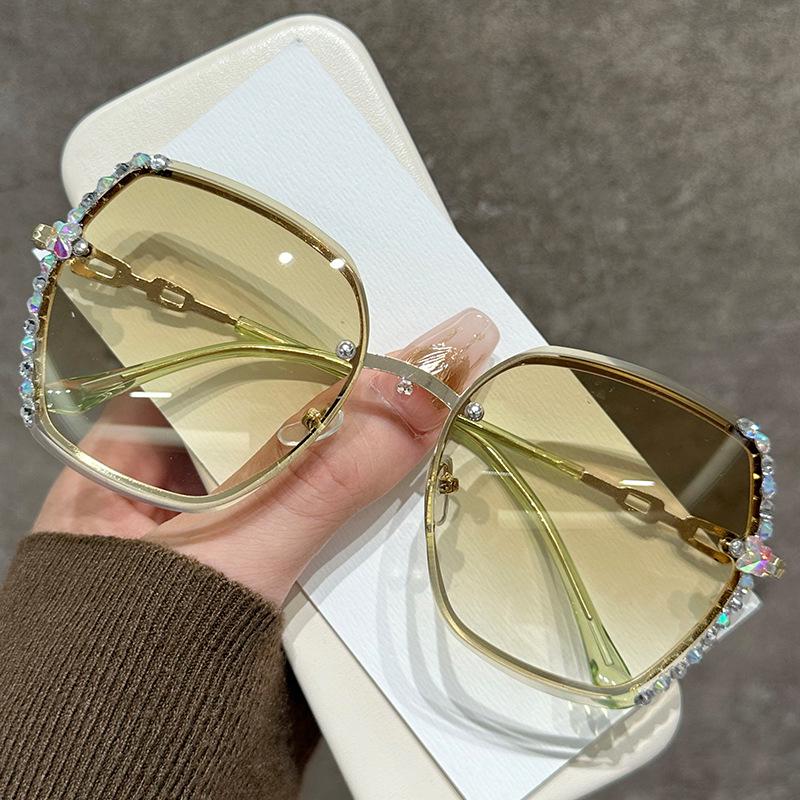 Солнцезащитные очки без оправы в корейском стиле со стразами – Женские модные, с бриллиантовой отделкой, защита от УФ-лучей, стройнящие большое лицо, уличный стиль.