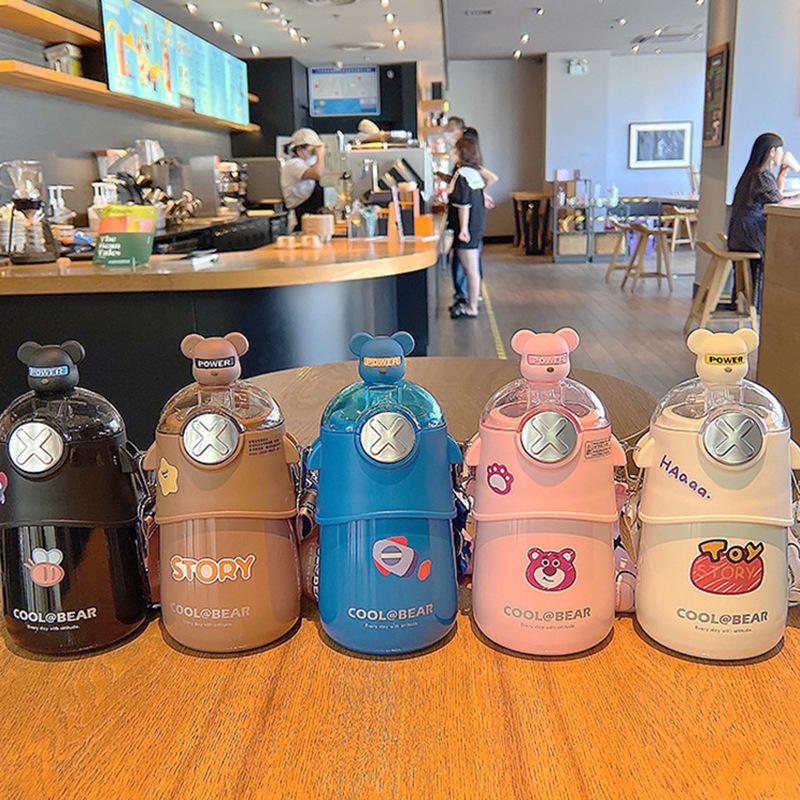 Соломенная бутылка для воды с плечевым ремнем, милая изолированная бутылка для воды из нержавеющей стали, подходит для женских школьных офисов и спортивных чашек для воды