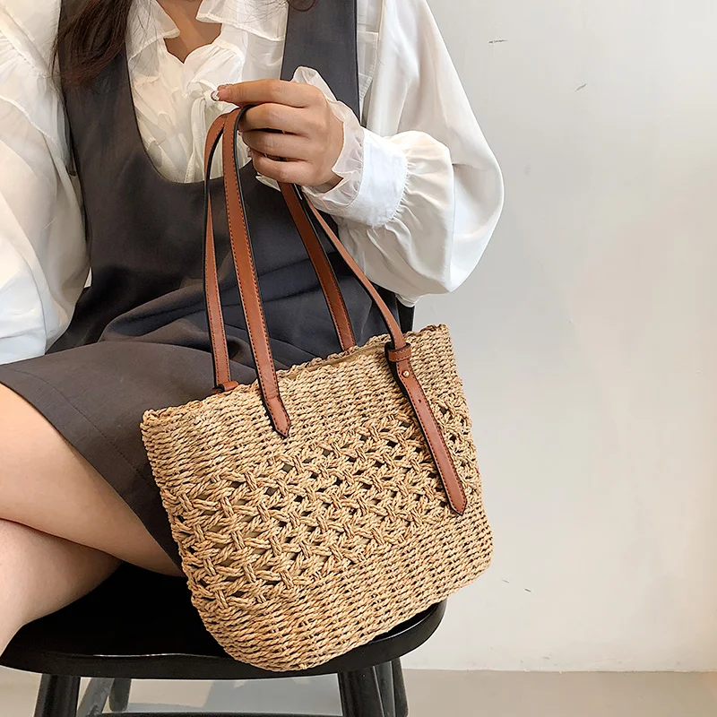 Соломенная плетеная Сумка для девушек, роскошный брендовый дизайнерский саквояж на плечо, простая Пляжная Корзина, лето
