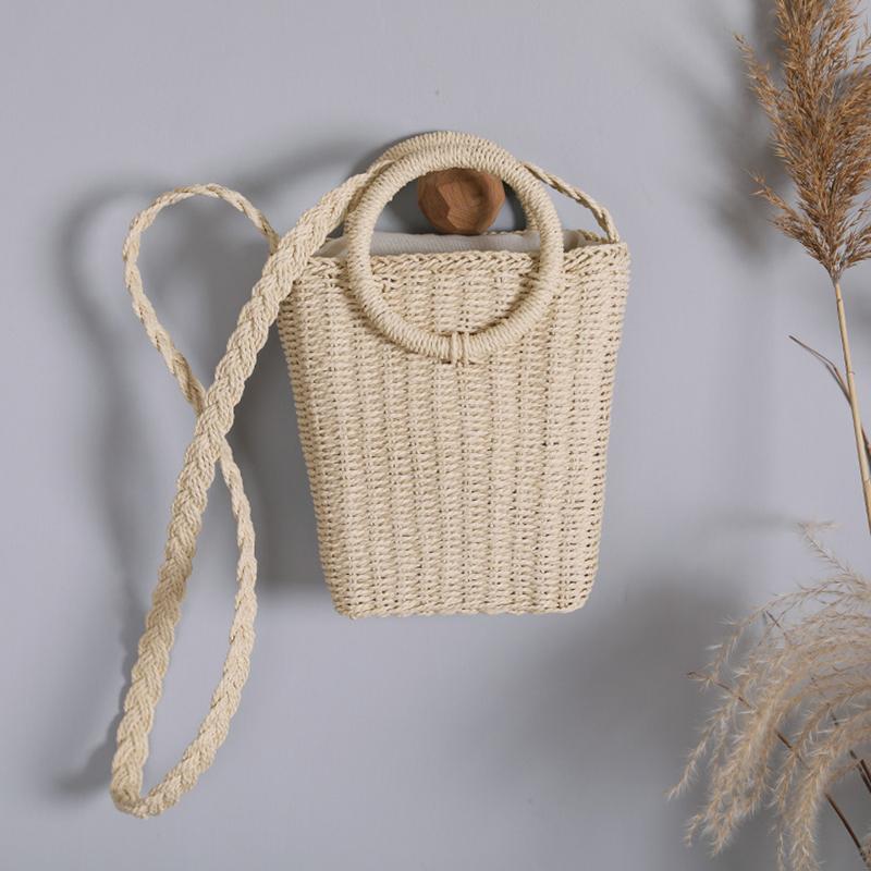 Соломенная плетеная сумка ручной работы из ротанга, винтажная вязаная сумка через плечо, женская маленькая сумочка и сумочка, летняя пляжная сумка-ведро 16*8*20cm бежевый