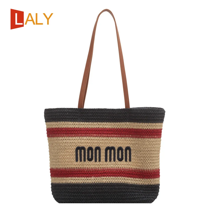 Соломенная пляжная сумка-мешок LALY в стиле бохо, вместительный тоут-мешок, модная полосатая вязаная сумочка на плечо, Роскошный дизайнерский...