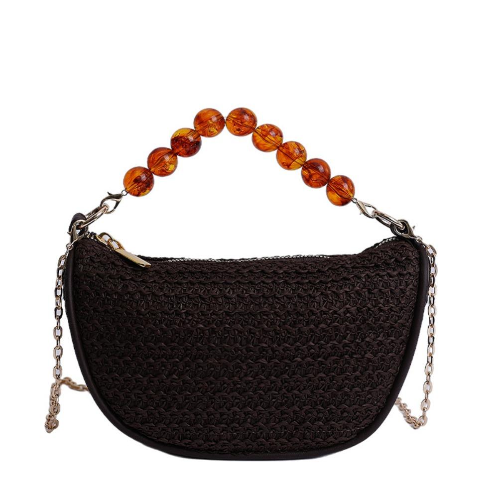 Соломенная сумка большой вместимости Модная летняя пляжная сумка Повседневная сумка через плечо на металлической цепочке Женская кофейный