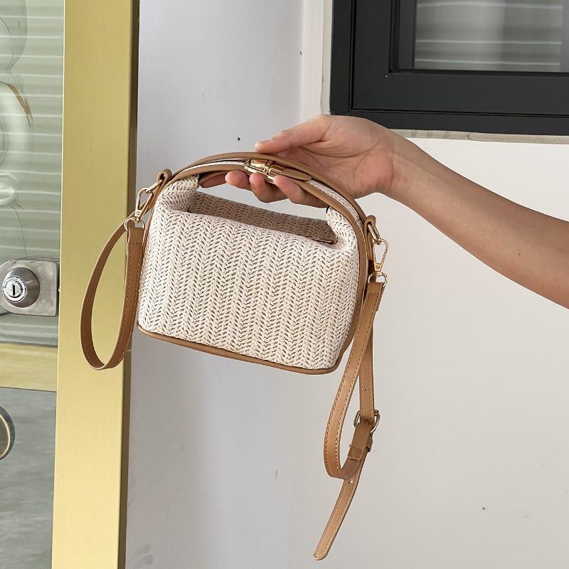 Соломенная сумка Сумка-ведро Сумка через плечо Ручная сумка Женская сумка Трендовая тканая сумка One Size