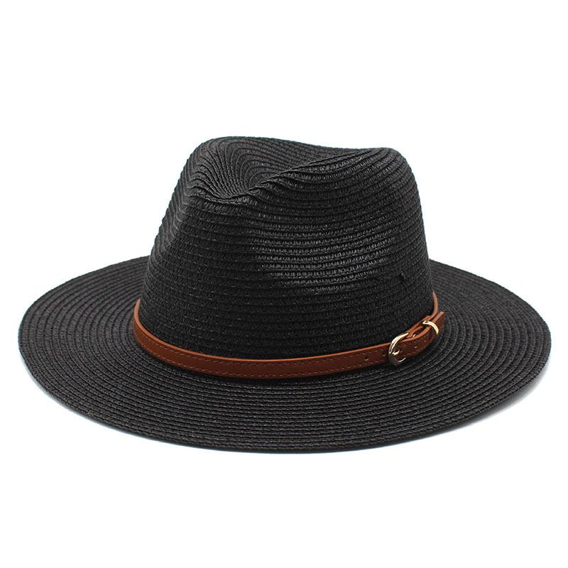 Соломенная шляпа Дамская шляпа-цилиндр Мужская и женская соломенная модная солнцезащитная шляпа от солнца M(56-58cm) чёрный