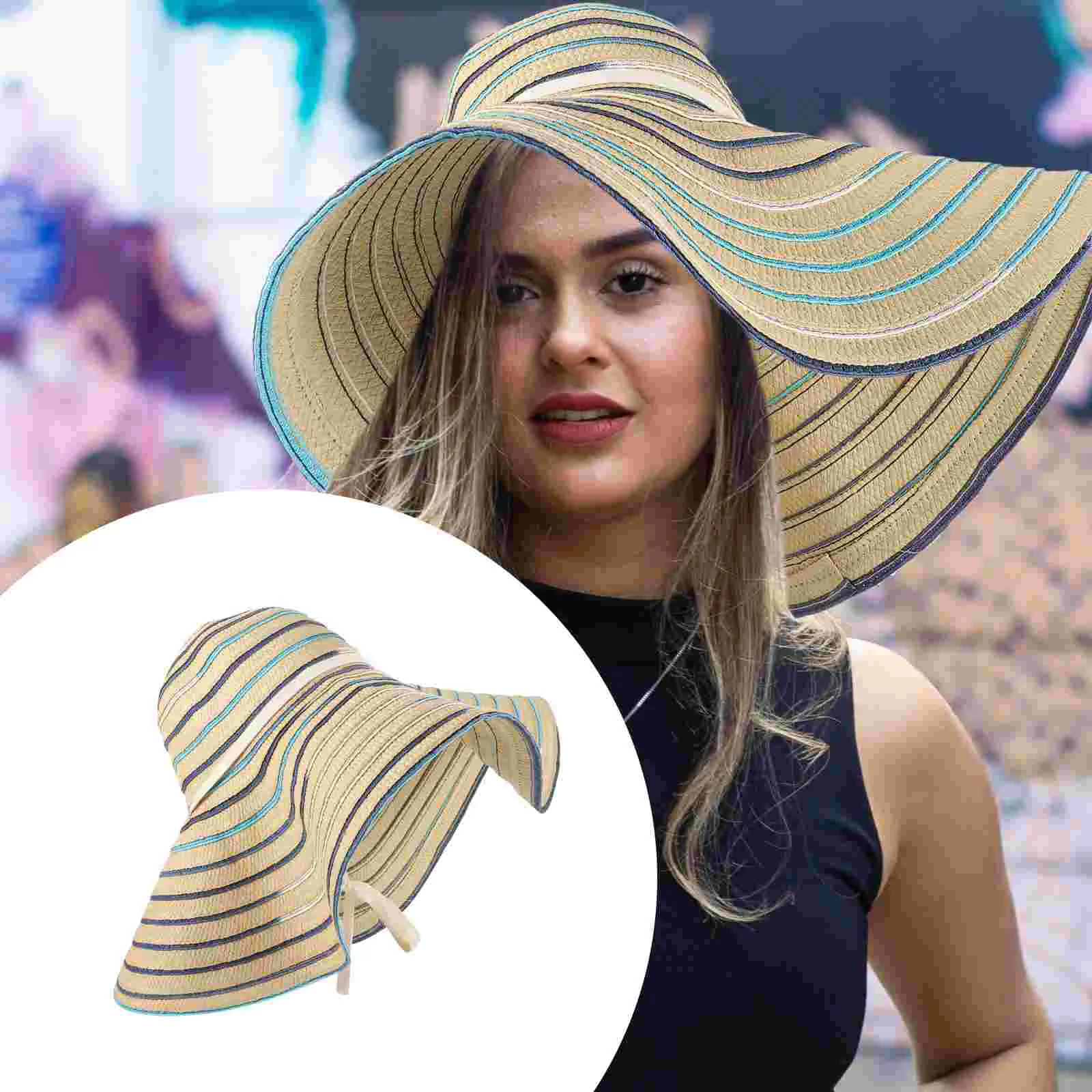 Соломенная шляпа большого размера, Солнцезащитная повязка на голову, портативная пляжная плетеная декоративная Защитная шляпа для женщин