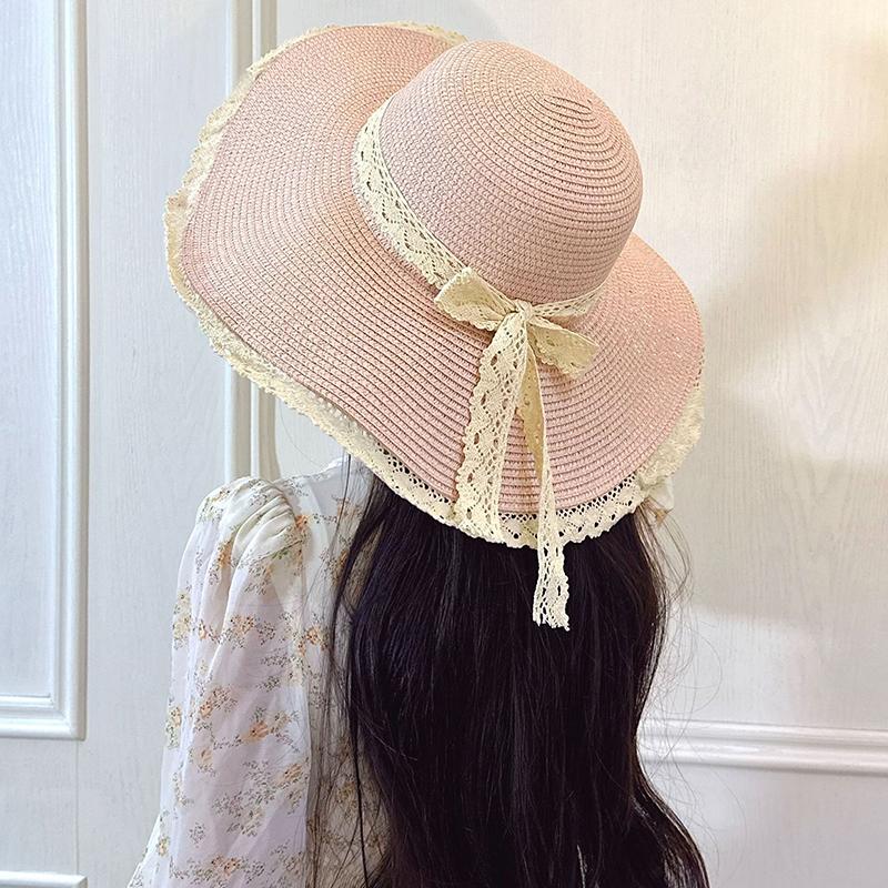 Соломенная шляпа в стиле ретро для женщин, летняя шляпа для отдыха на море, пляжная шляпа с французским куполом и большими полями, защита от солнца розовый