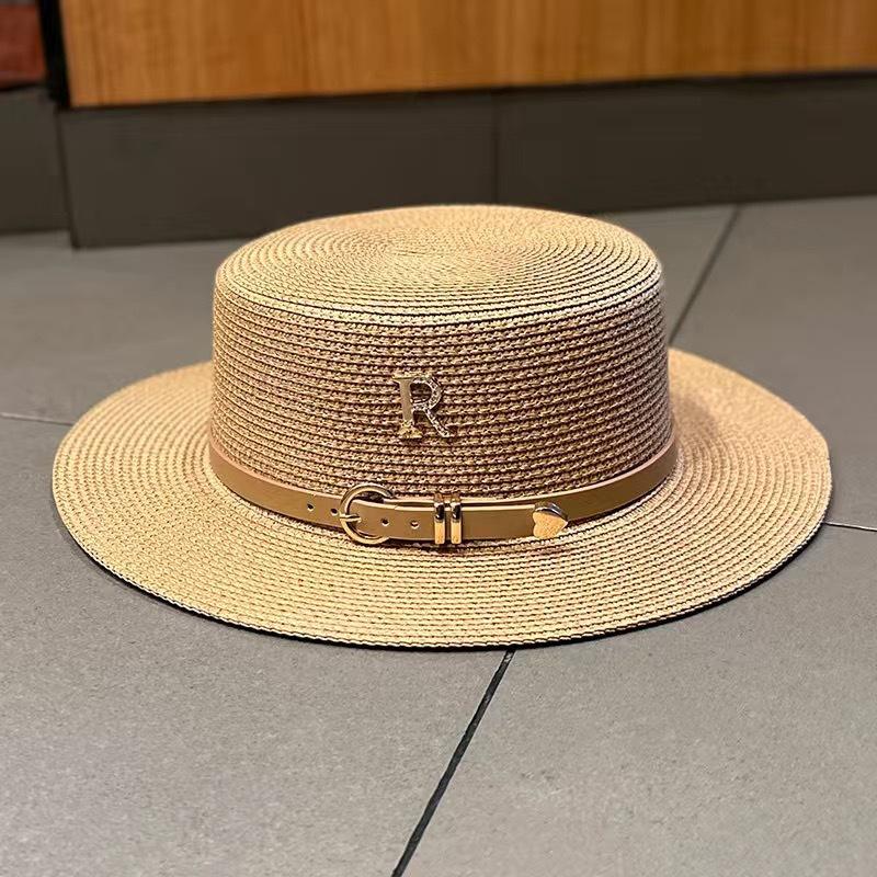 Соломенная шляпа для женщин на открытом воздухе, летняя пляжная кепка от солнца, плетеная соломенная шляпа с солнцезащитным кремом, винтажная шляпа-цилиндр с французским поясом, солнцезащитные шляпы для женщин 56-58cm