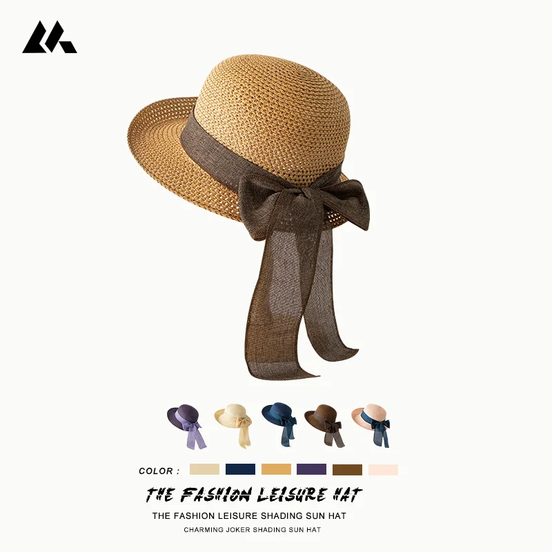 Соломенная шляпа женская летняя Солнцезащитная шляпа с большими полями Складная пляжная универсальная шляпа в Корейском стиле