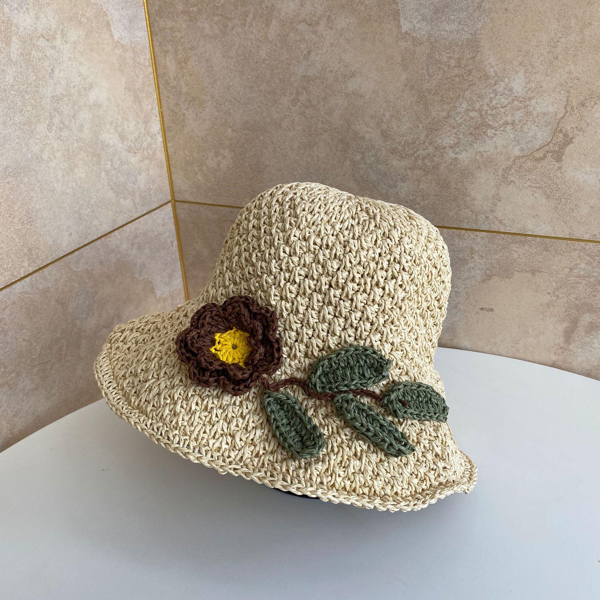 Соломенная шляпа женская приморская солнцезащитная солнцезащитная маленькая свежая пляжная шляпа летняя складная темпераментная универсальная модная шляпа от солнца M(56-58cm)