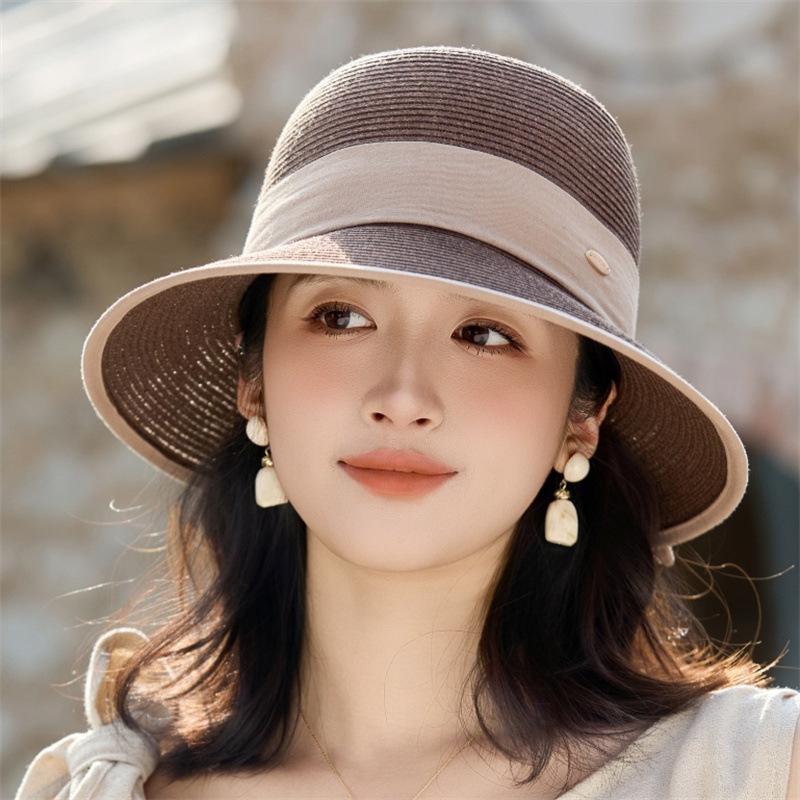 Соломенная шляпа с бантом для защиты от солнца, женская летняя шляпа для отдыха с большим бантом и карнизом, милая летняя шляпа one size темно-коричневого