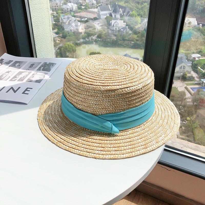 Соломенная шляпа с плоскими полями, женская летняя солнцезащитная соломенная шляпа, маленькая свежая пляжная модная темпераментная шляпа-цилиндр