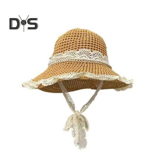 Соломенная шляпа с широкими полями, вязаная соломенная шляпа-ведро с кружевным ремешком, летняя пляжная шляпа для походов, путешествий хаки