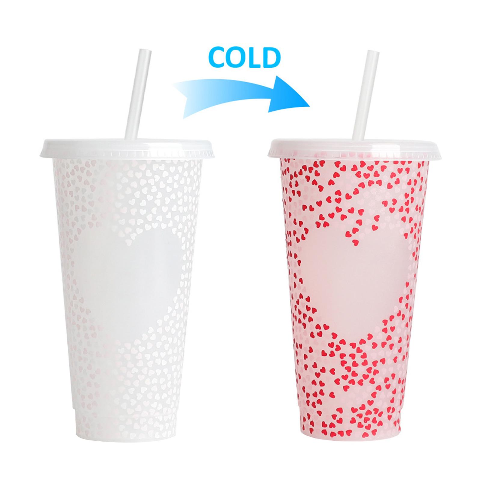 Соломенные чашки для воды на 25 унций с крышкой, меняющей цвет, однослойные штабелируемые многоразовые бутылки для питья на День Святого Валентина Valentines Day B