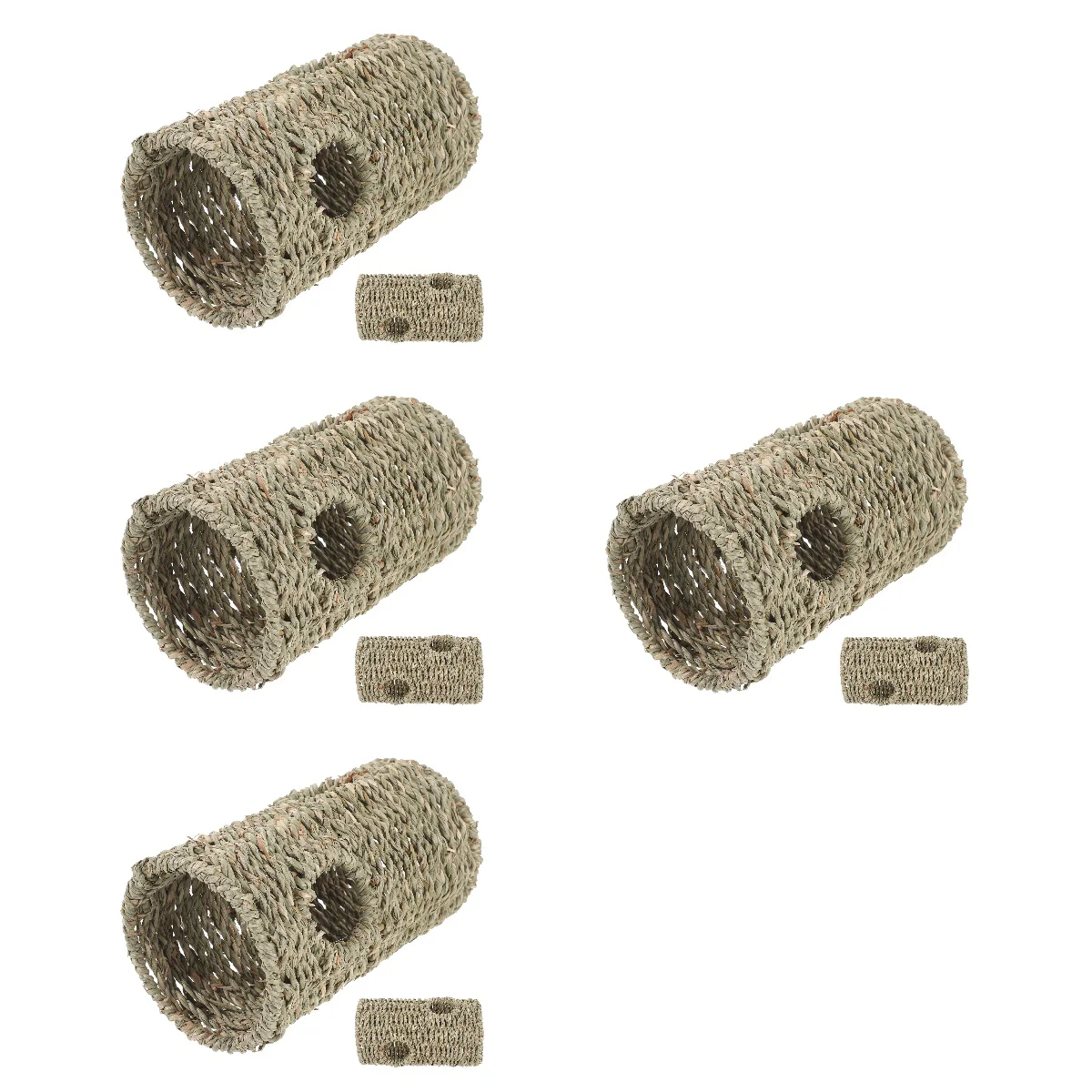 Соломенный игрушечный туннель, тканый домик для домашних животных, хомяк, гнездо, Гвинея, туннели, трубки, кровать для сна и тренировок, игру...