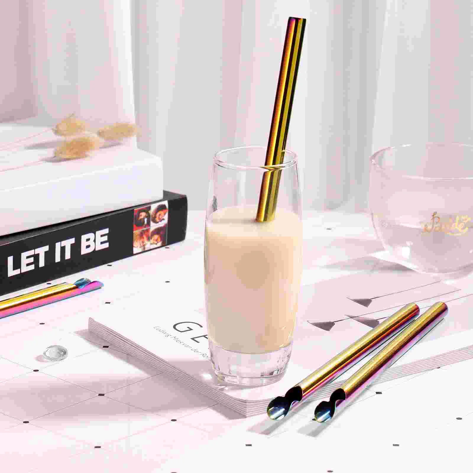 Соломинки металлические многоразовые из нержавеющей стали для питья, соломинки для чая, Коктейльные прямые короткие радужные соломинки дл...