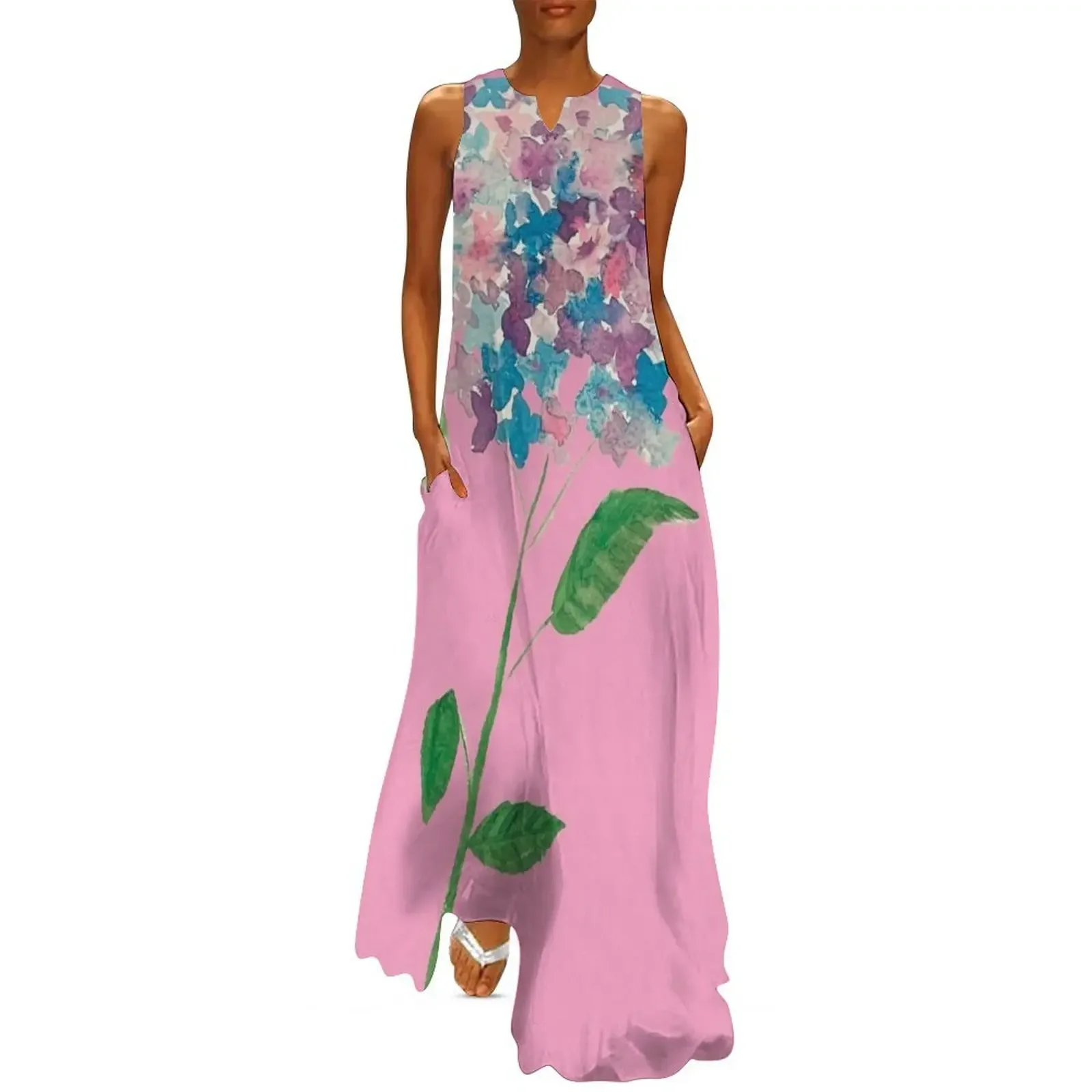 SLB Designs Hydrangea Watercolor Long Dress women long dresses dresses summer woman 2025 Woman clothing dress for women Dress