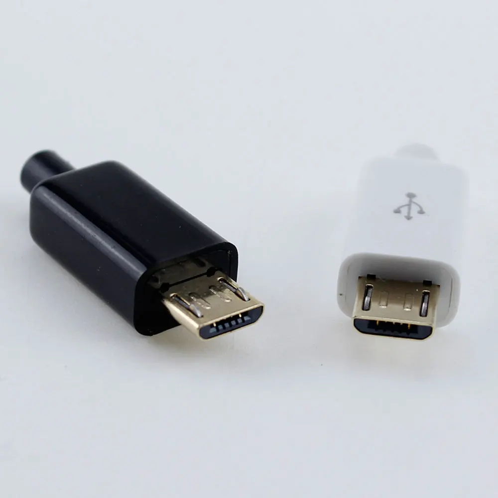 10pcs 4 in 1 White Black Micro USB 5PIN Welding Type DIY Male Plug Connectors Charger 5P USB Tail Charging Socket