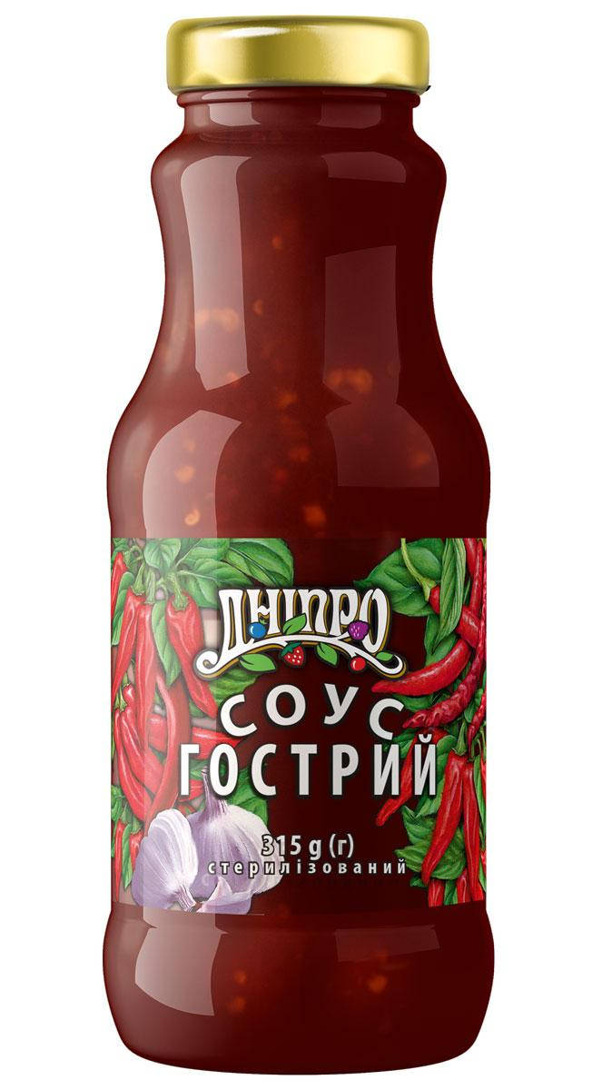Соус ТМ Дніпро Острый 315 г., б/стекло.