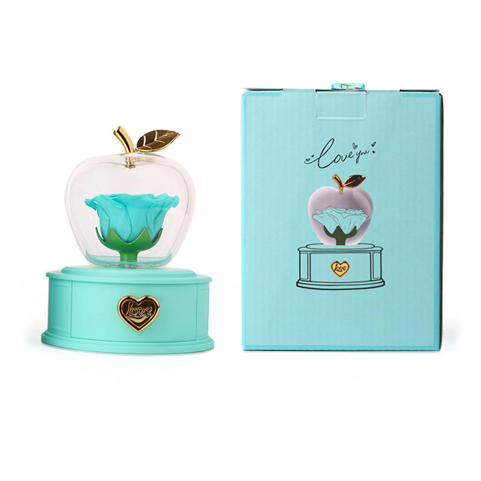 Сохраненная роза в форме яблока Шкатулка для украшений Очаровательная шкатулка для украшений в виде яблока с вечной розой Шкатулка для ожерелья для памятных моментов синий
