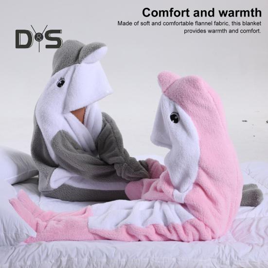 Спальный мешок, мультяшная форма дельфина, мягкая фланель, кемпинг, семейные прогулки и ночевка, носимое одеяло для взрослых и детей, комбинезон с капюшоном для косплея XS розовый