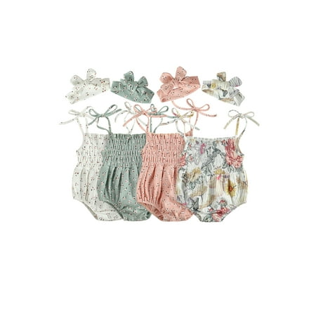 Infant Baby Girls 2 Pcs Outfits Suits Sleeveless Floral Printed Romper + Bowknot Headband