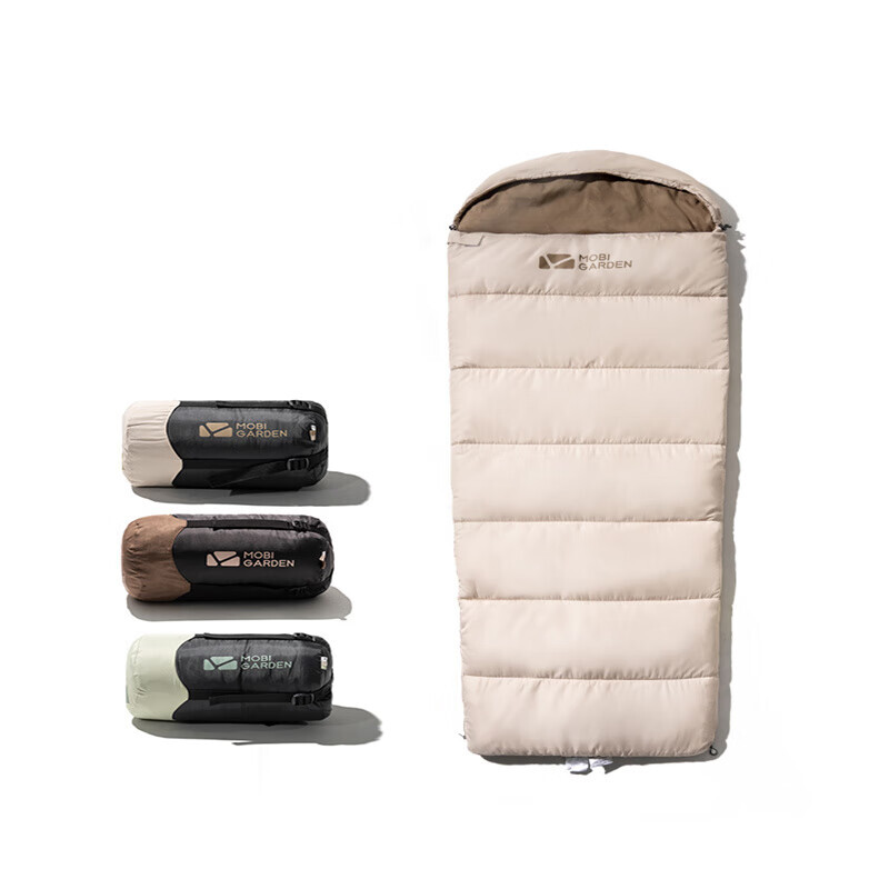 Спальный мешок Mobi Garden утолщенный и сращиваемый для сохранения тепла в снежные месяцы 10-16℃ светло-песочного цвета 1,4 кг (справа)