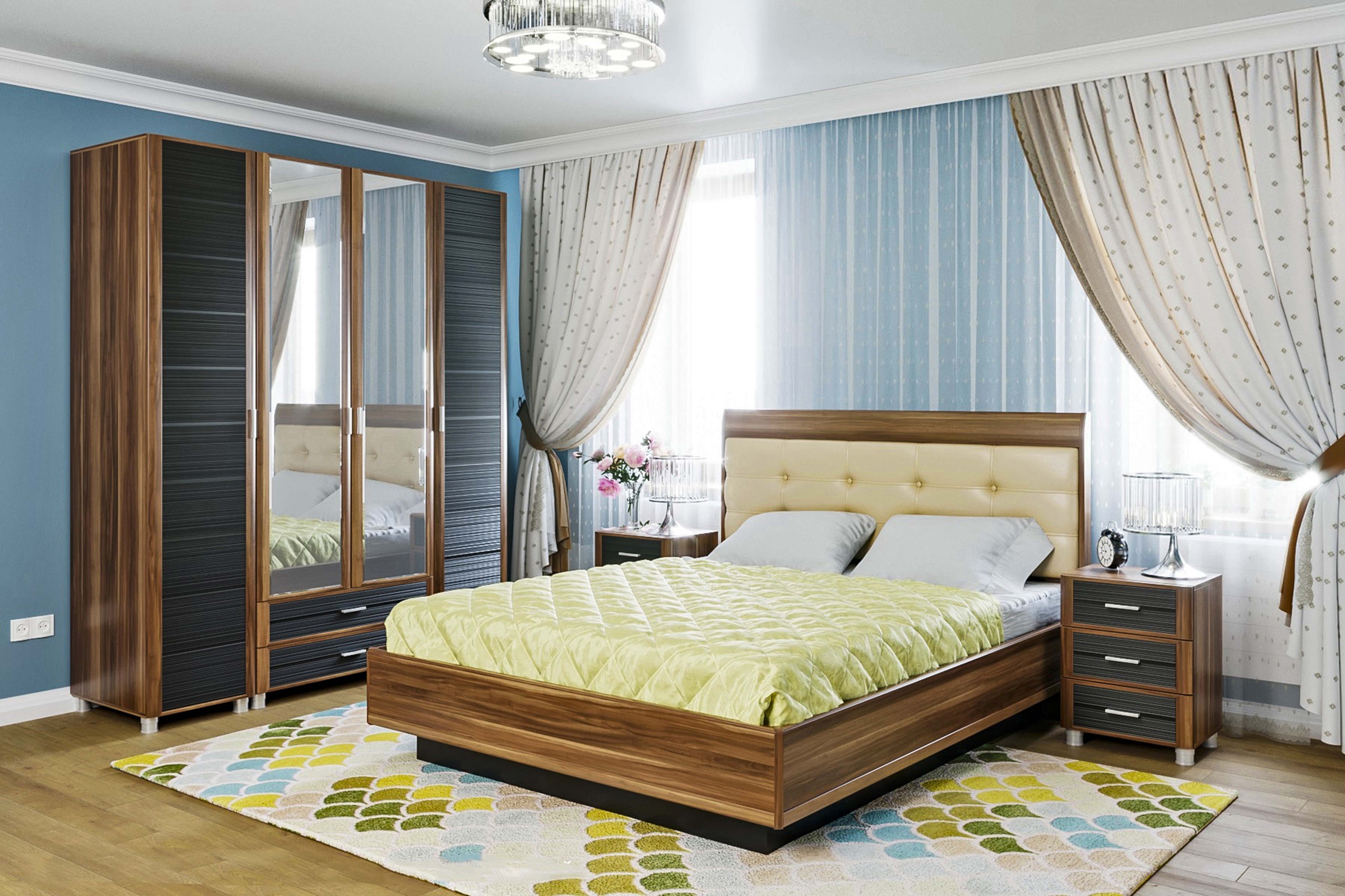 Спальня комплект Лером Камелия из МДФ 180*200 см Слива Валлис - комбинированный (ler-1107)