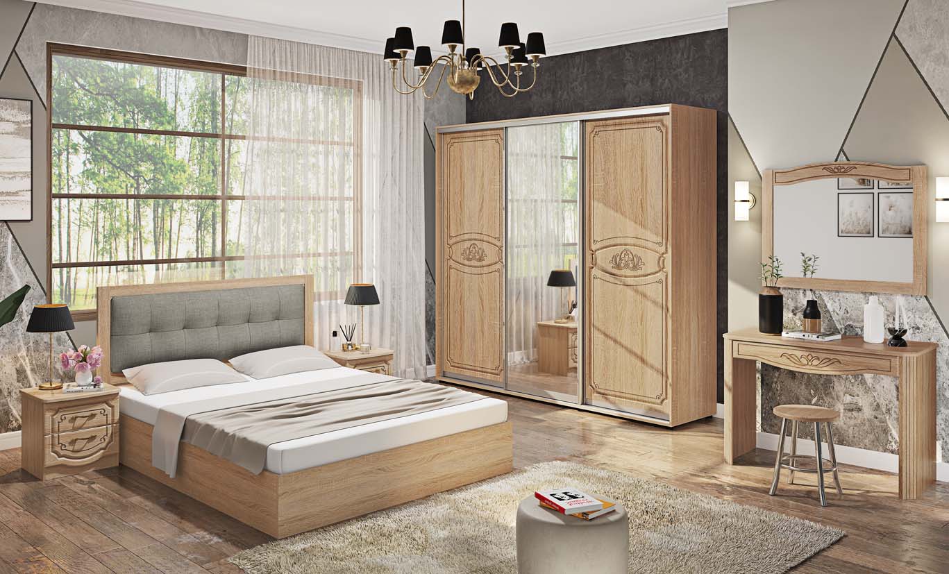 Спальня комплект из ЛДСП и МДФ Классика СП-4596 дуб натуральный цвет Комфорт Мебель