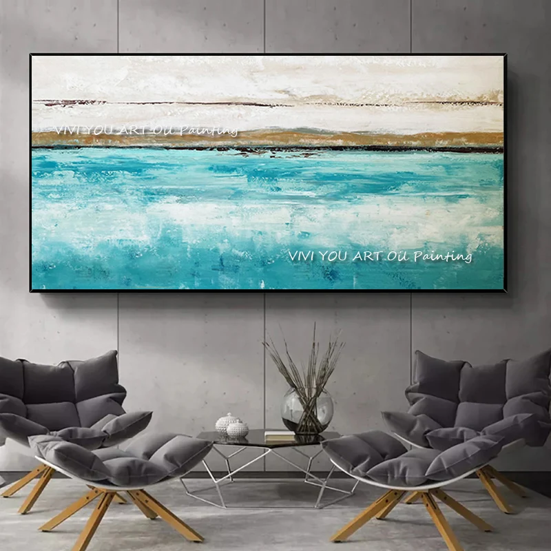 Специальное предложение, современная абстрактная Толстая масляная живопись ручной работы с видом на море на холсте, синяя роспись, настенн...