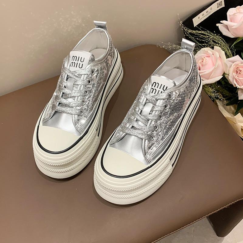 Специальные эспадрильи на платформе с пайетками женские летние новые универсальные повседневные кеды небольшое увеличение высоты 40 серебряный