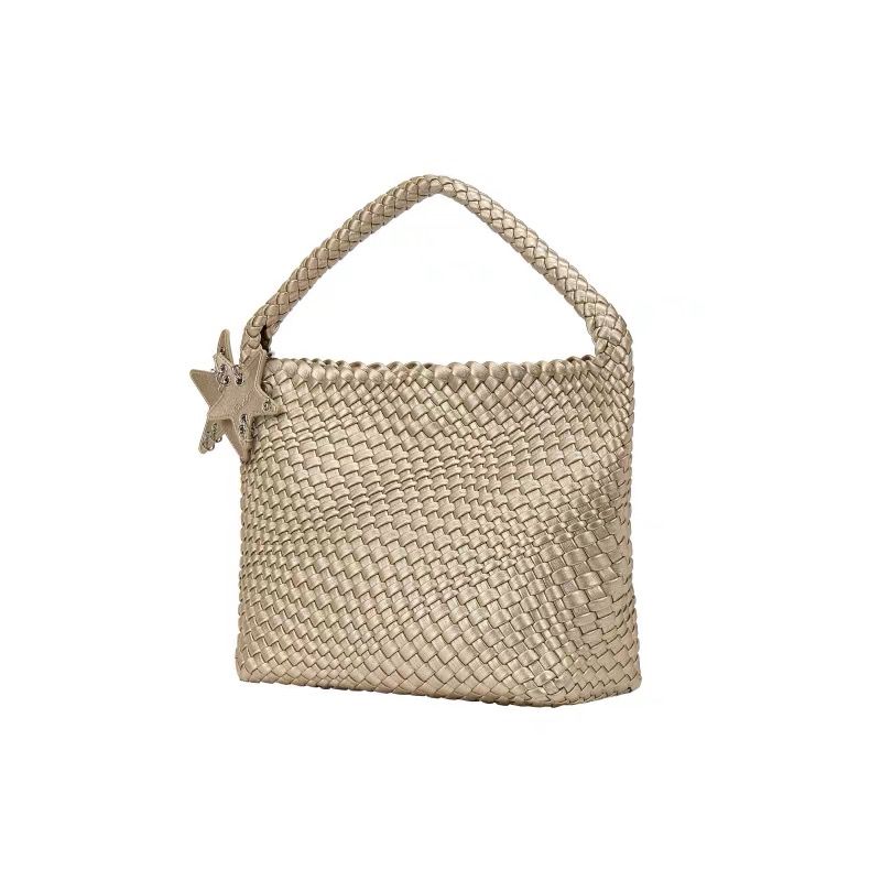 Сплетенная вручную оригинального дизайна новая средняя плетеная сумка-тоут для весны и лета, для переноски, для поездок на работу, портативная на плечо, женская Champagne, medium scale