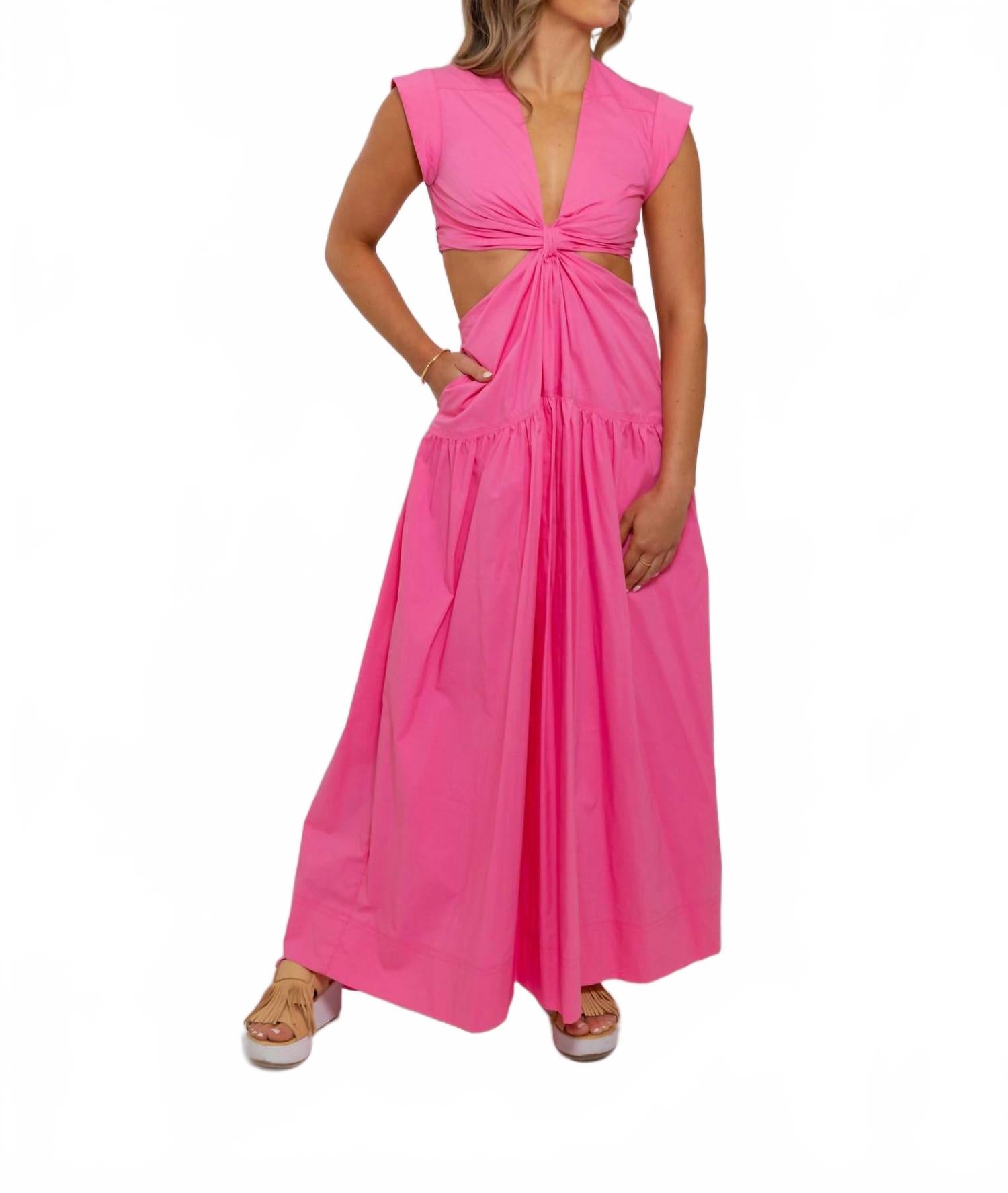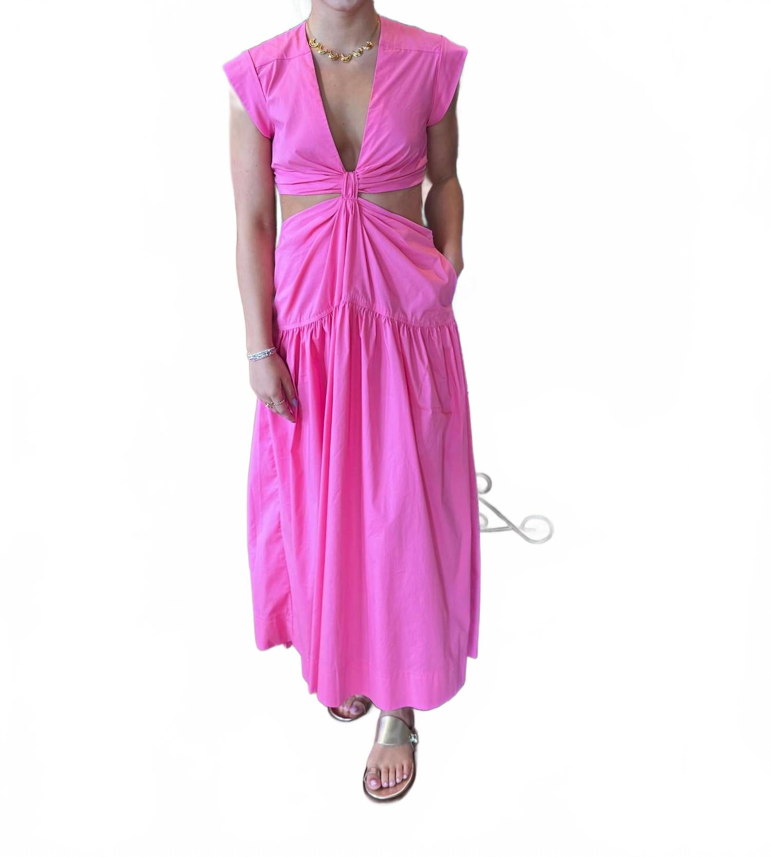Сплошное поплиновое платье макси с узлом и вырезом в ярко-розовом цвете Karlie