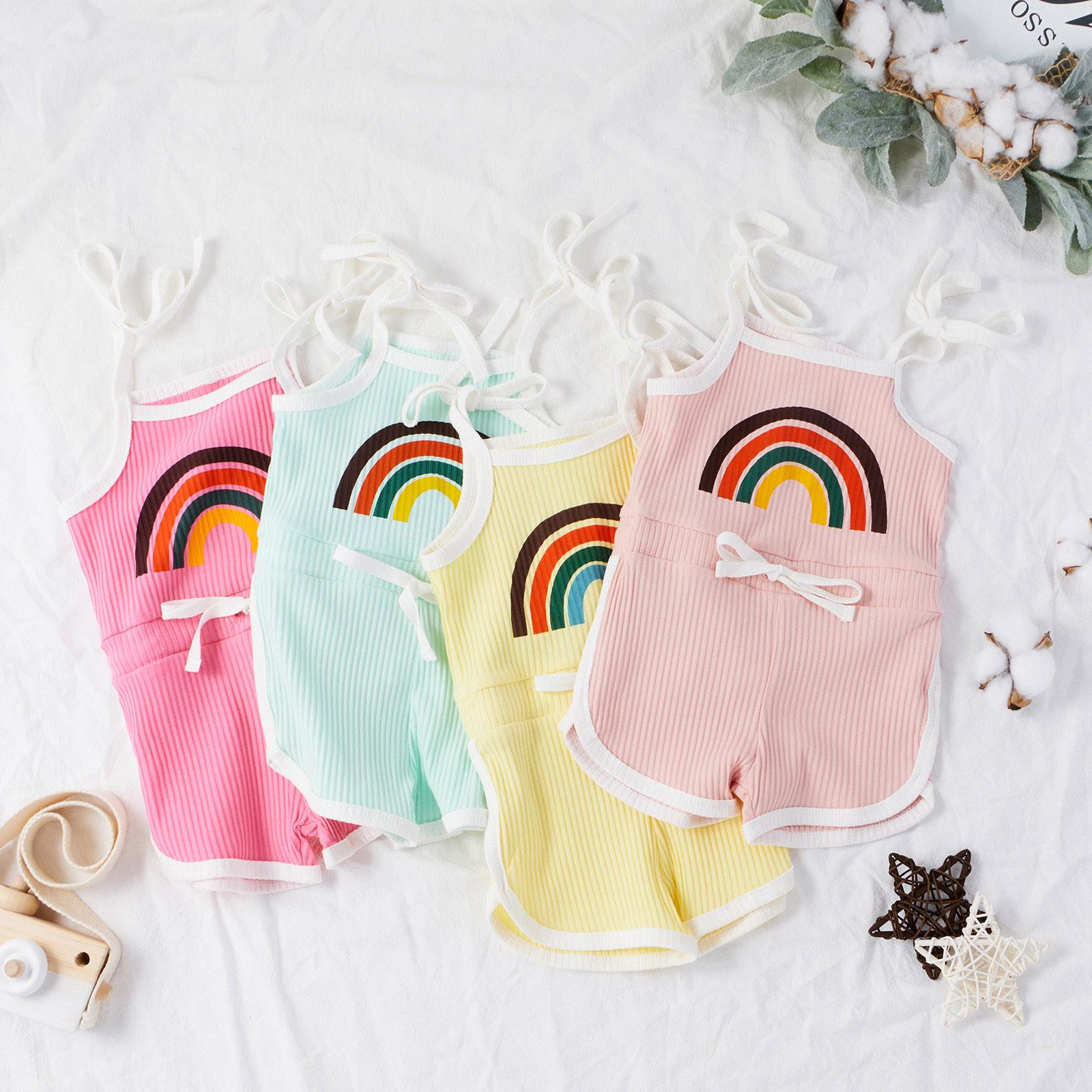 Сплошной костюм для новорожденных девочек, летние шорты без рукавов с радужным принтом