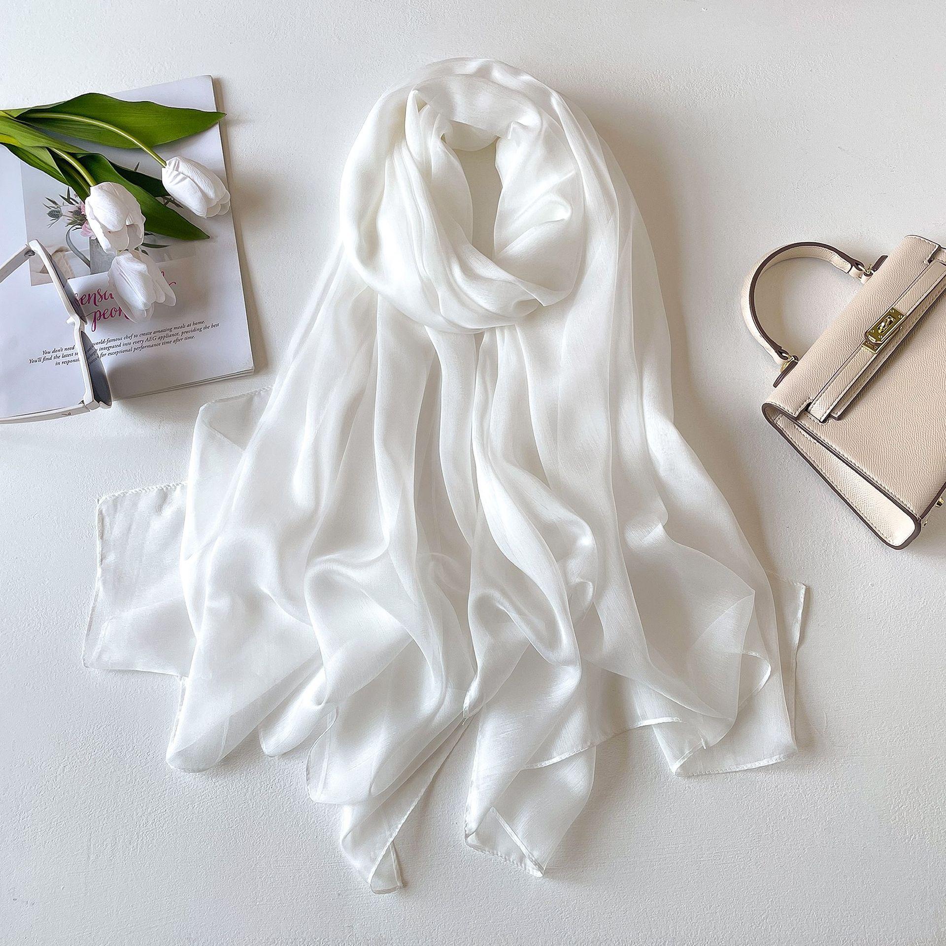 Сплошной цветной платок, шелковый шарф, тонкий большой шарф, дорожная защита от солнца, декоративная шаль, льняной простой шарф, универсальный 190*100cm белый