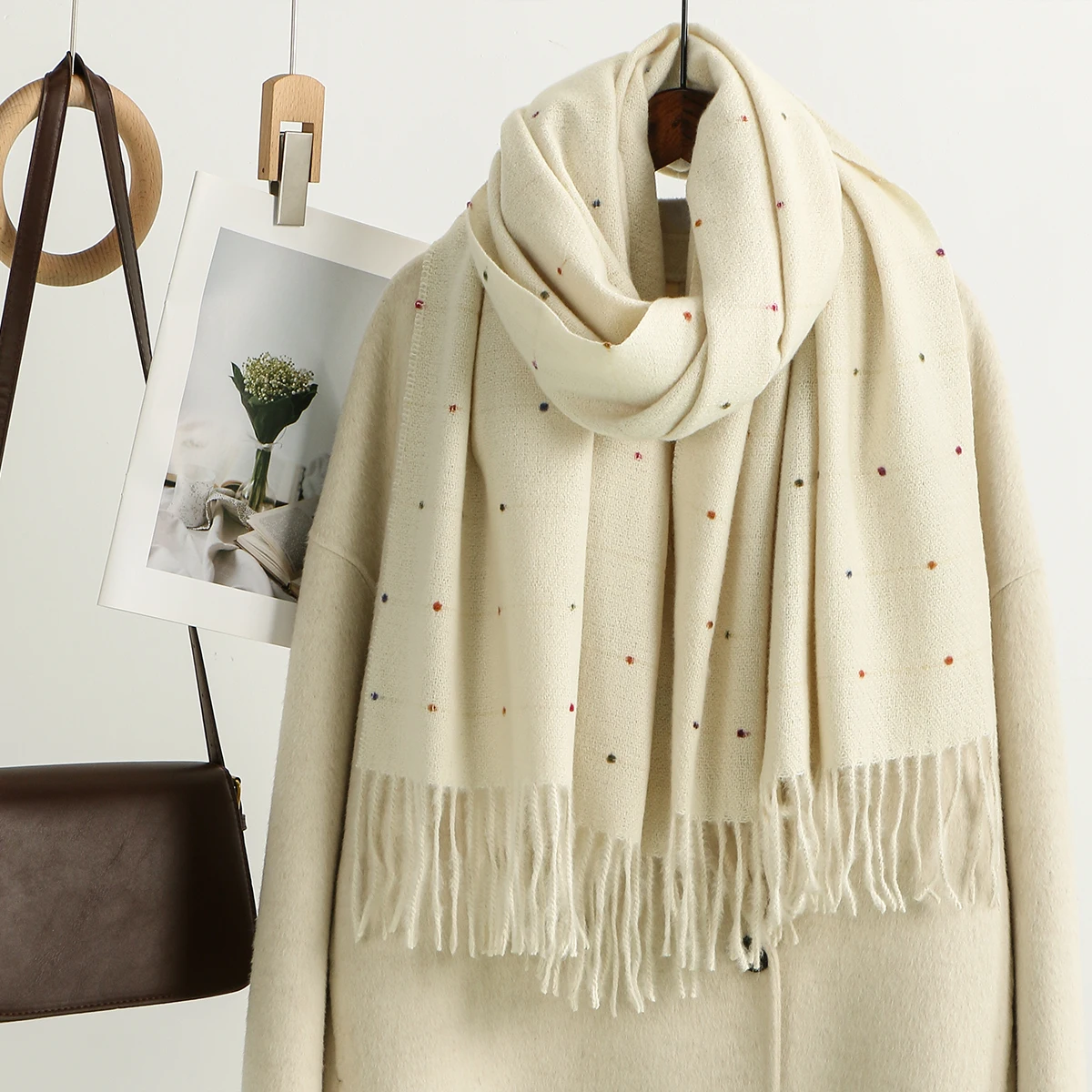Сплошной цвет в горошек, длинный толстый шарф, шаль для женщин и девочек, теплые шарфы, глушитель, студенческий зимний теплый шейный платок, шали