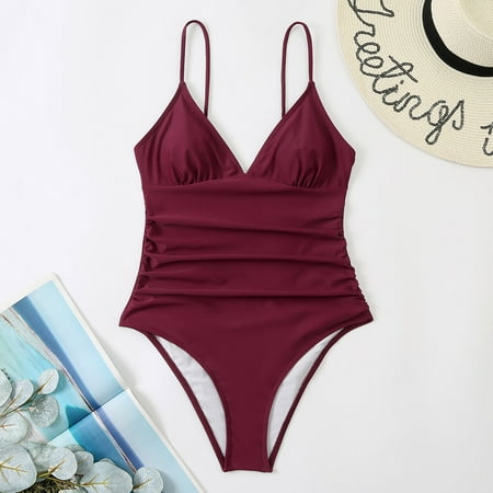 Finelylove Slimming Swimsuits For Women Tummy Concealing Sport Bra Style Bikini Purple L
