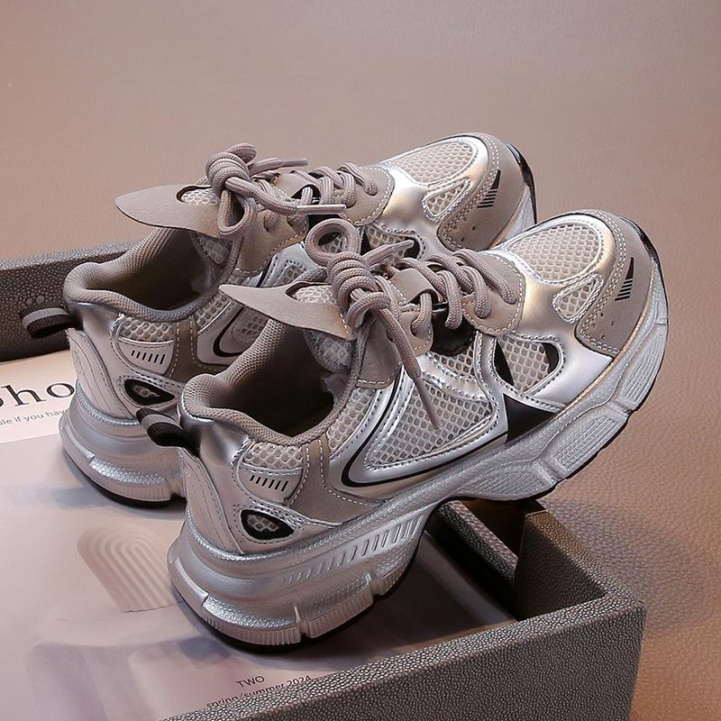 Спортивная обувь для девочек, средних и старших детей, повседневная, сетчатая, дышащая, с мягкой подошвой, детская, взрывная, нескользящая, осенне-летняя, кроссовки для папы, тренд 31 серебряный
